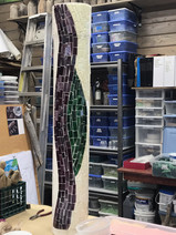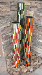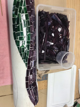Do you ever walk into a room to do something and end up doing a completely different thing? Well, that has been me lately. I spent time this spring helping out some family with a couple moves and the downsizing/right sizing/organizing/reorganizing bug hit me. I have an extensive amount of scrap glass for mosaics so I bought 50 new containers and reorganized it all with labels. So much easier to find the one I need. I painted a couple older cabinets spur of the moment yesterday. Like I had time haha. Last week I started making these mosaic poles, I guess you could call them, for by the entrance door outside. I have a small fountain there and decided to redo it with the poles and raise the water fall as well. The fountain base is still ice though not for long.