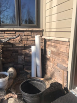 The first picture shows what I am starting with. The fountain base is below the rocks in a barrel covered with a metal grid. The 2nd pictures shows the inspiration I found on Pinterest. My thought is to insert a plant into the tops of each pipe to cascade down. The 3rd picture show the inner pipes that are pounded into the gravel to hold the outer pipes steady and straight.The 4th picture shows the placement of the 2 taller pipes. The 5th and 6th pictures show the middle sized pipe with the glass being glued on. Once all the glass is on the pipe it will be grouted and sealed. I think they will be purple, green, ivory, and sky blue? I think. I am kind of a "do as I go girl". What feels and looks right. I plan on lifting them for winter too just in case. We get a lot of snow and the pile there is usually just under the window so they would be covered anyway. I will keep you updated on this project if I don't get too waylaid by other ones lol!!!! Have a great day y'all.